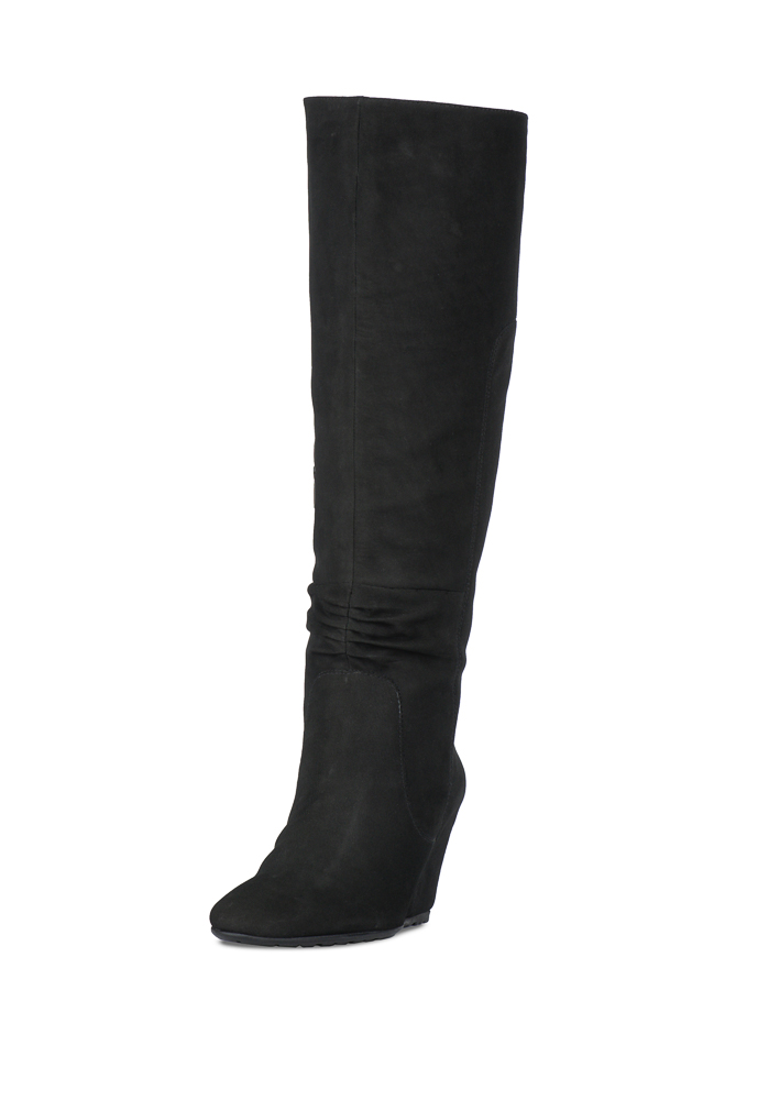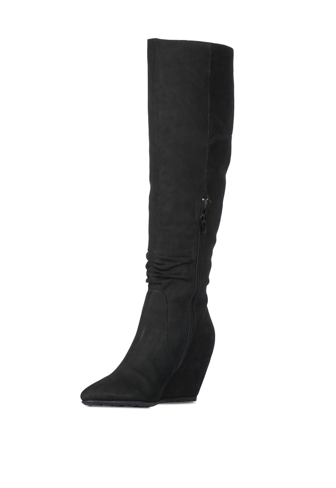 Γυναικεία μπότα μέχρι το γόνατο, πλατφόρμα,  Είναι κατασκευασμένα από suede ή αλλιώς καστόρι, ένα μαλακό και εύκαμπτο υλικό με απαλή υφή, φερμουάρ στο πλαινό μέρος, χρώμα μαύρο.