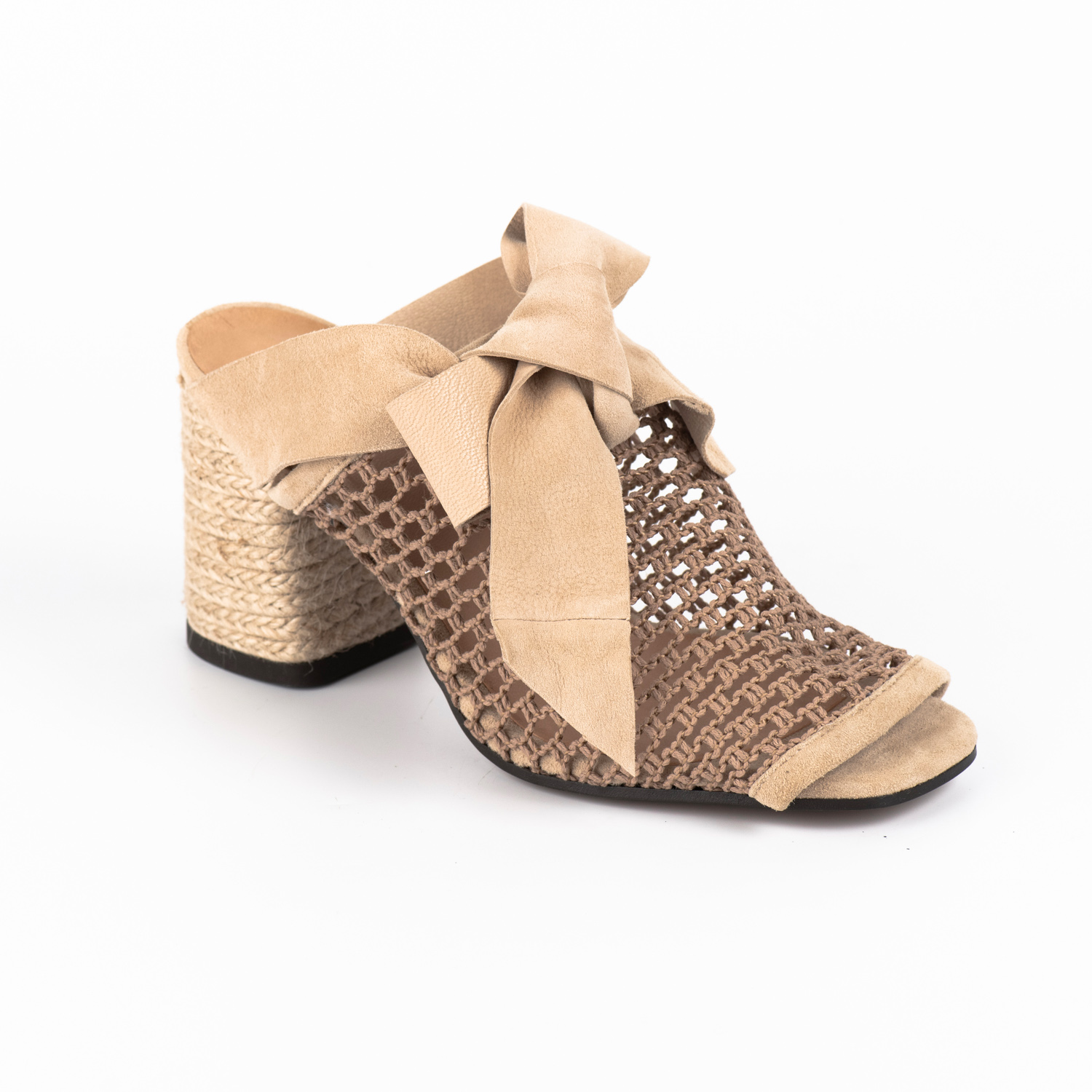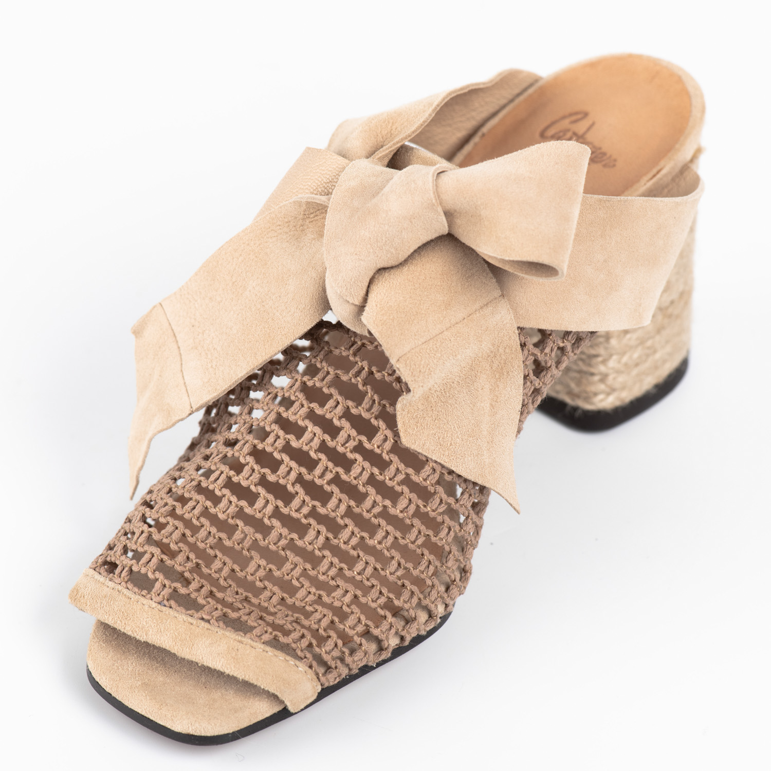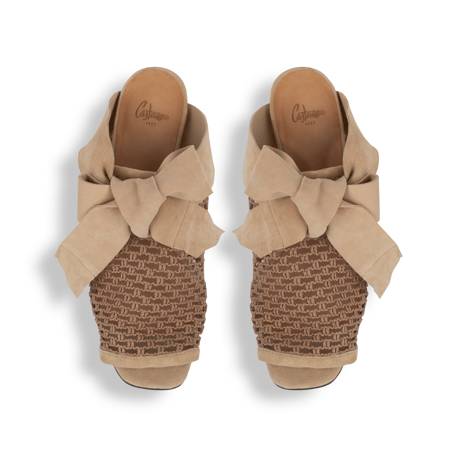 Castaner γυναικεία mules δερμάτινο πάτο , μπεζ δερμάτινο διακοσμητικό φιόγκο και δίχτυ .
