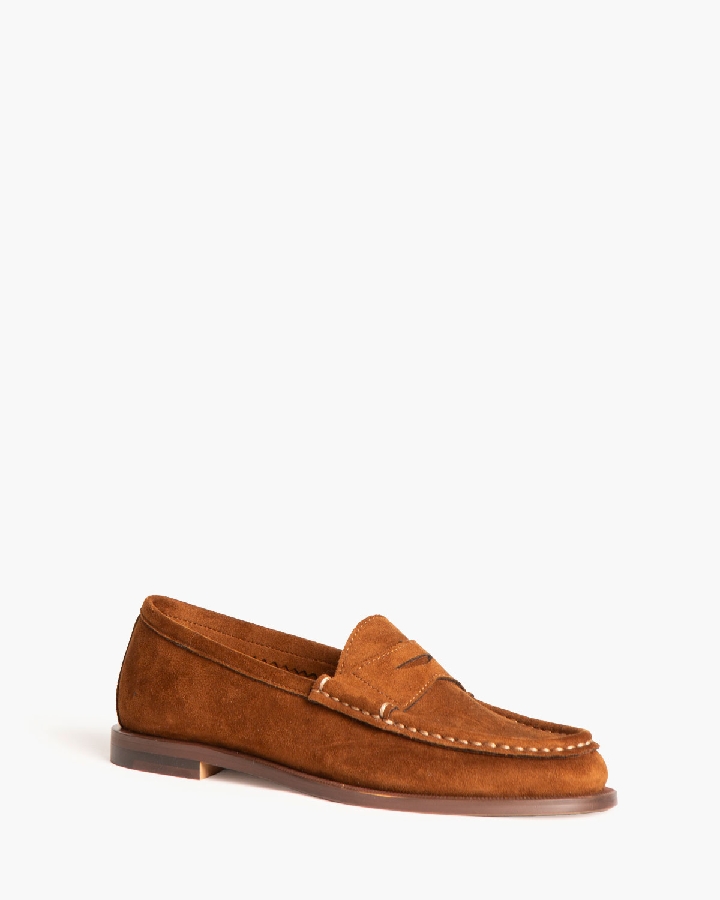 Γυναικεία σουέτ μοκασίνια απο οικολογικό δέρμα ,με στρογγυλεμένη μύτη μπροστά και εξώραφα ,
