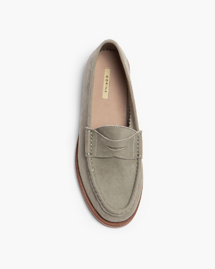 Γυναικεία σουέτ μοκασίνια απο οικολογικό δέρμα ,με στρογγυλεμένη μύτη μπροστά και εξώραφα ,