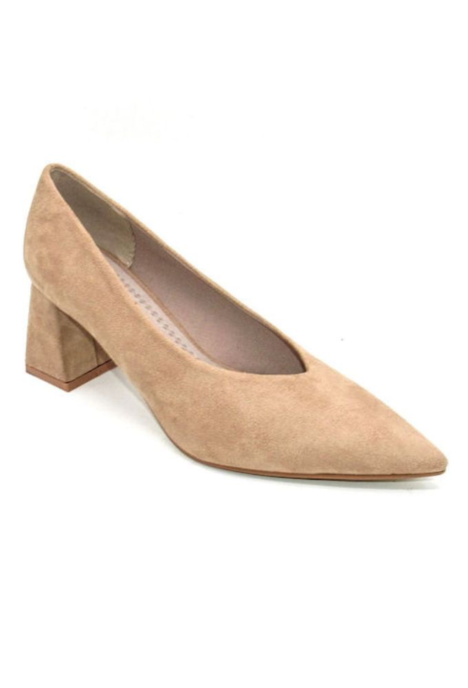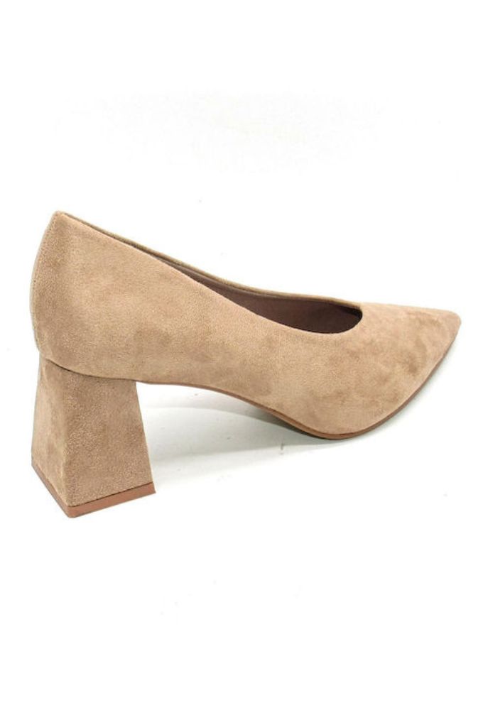 Corina Γόβες Μπεζ με Τετράγωνο Τακούνι