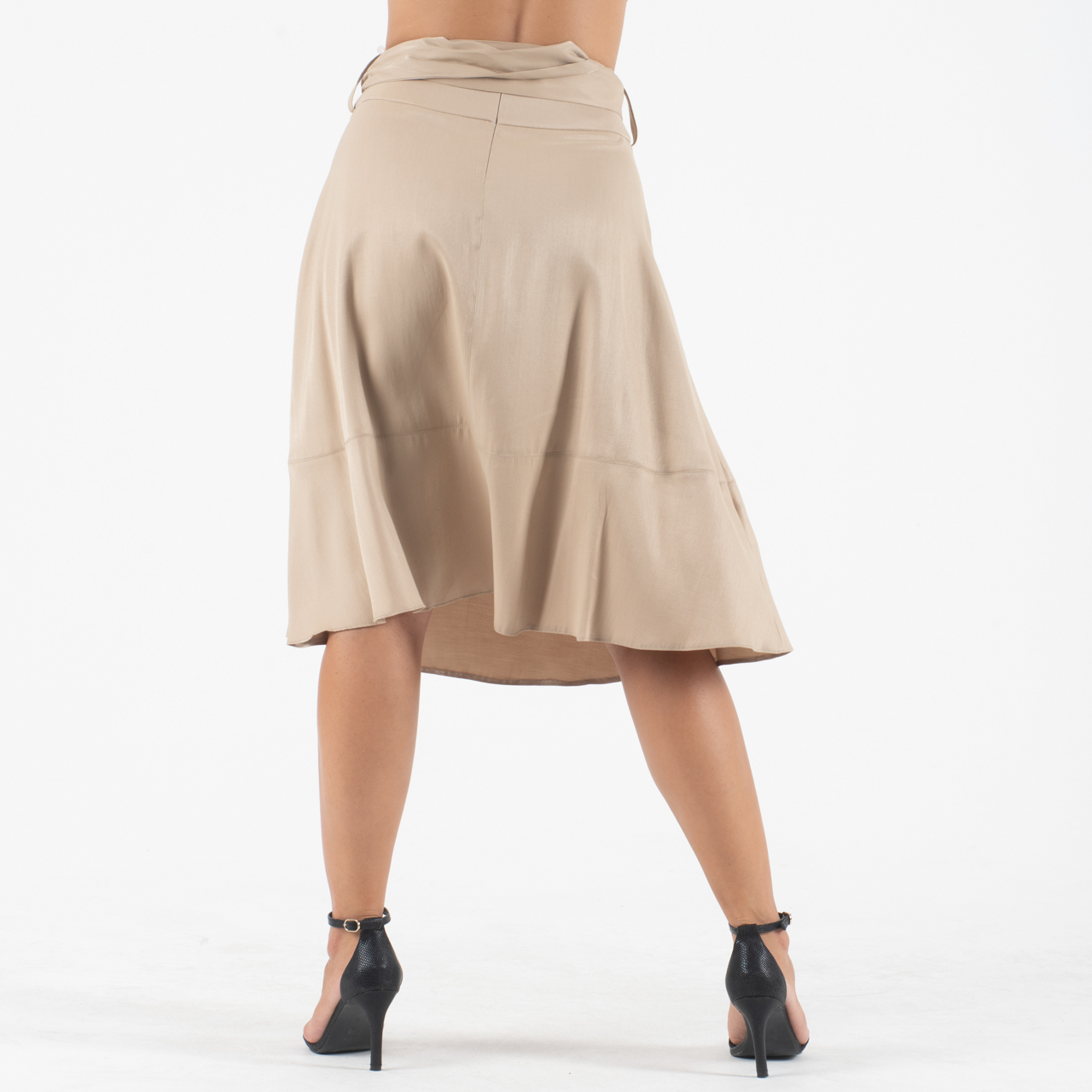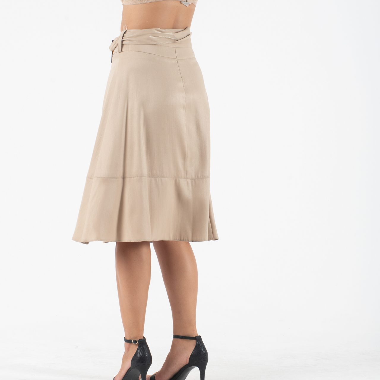 Ψηλό μεση μπεζ φούστα midi ,με χρυσή κλωστή, ελαφρώς κλος με δική της ζώνη.