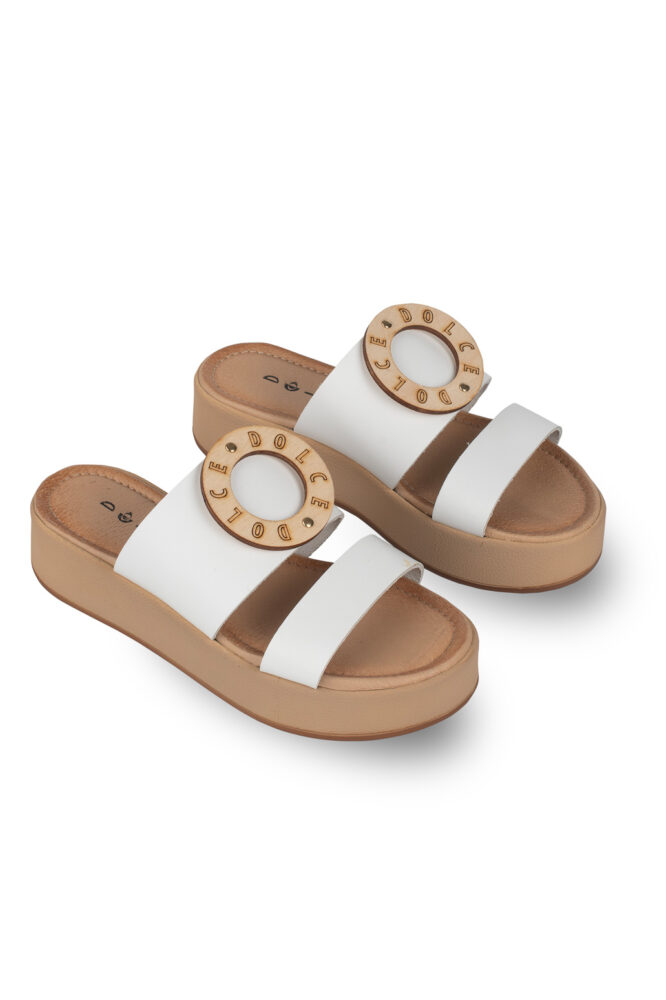 Dolce Γυναικεία Άσπρα Φλατ Σανδάλια