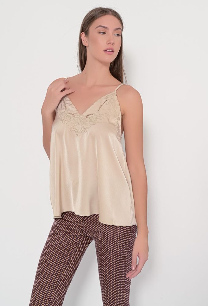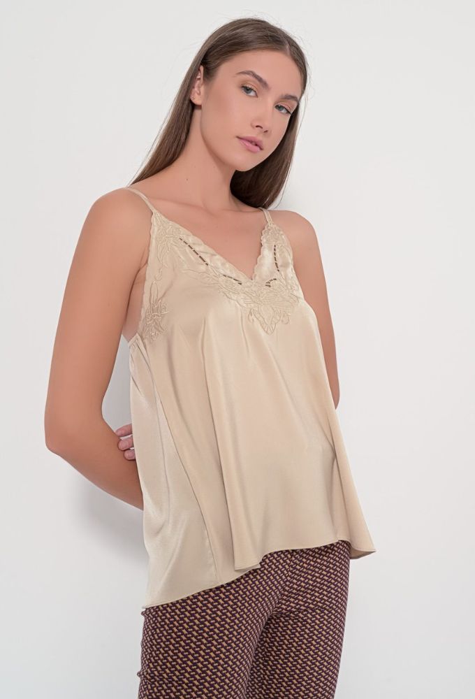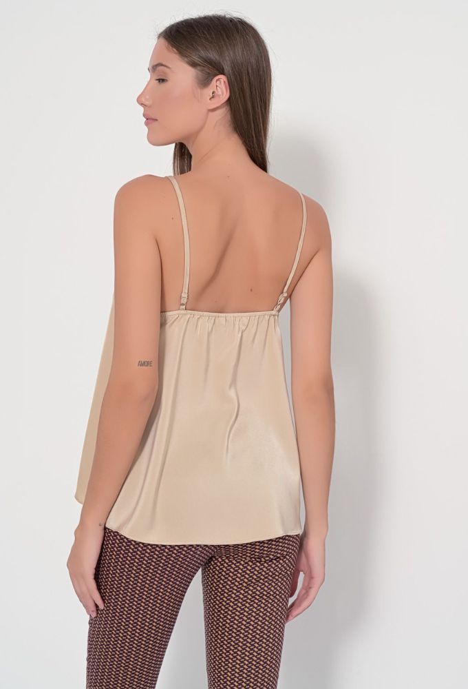 Γυναικείο τοπ, τύπου σατέν με ραντάκι, χρώμα μπεζ