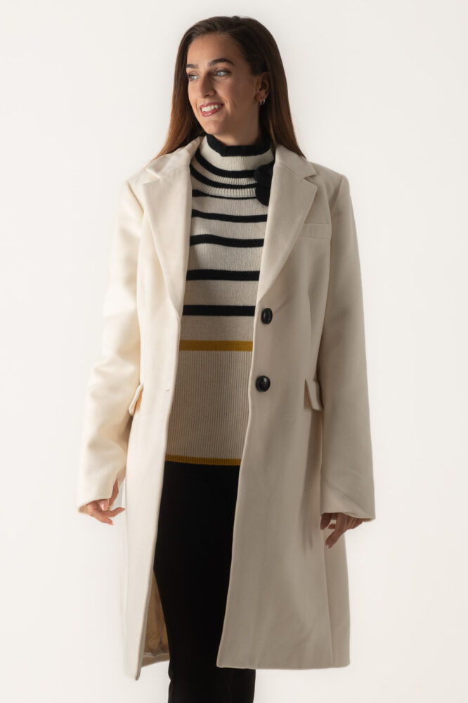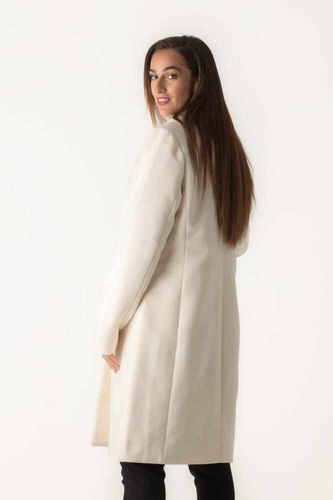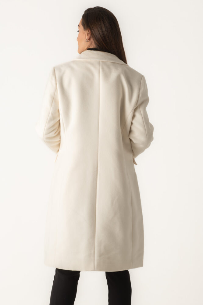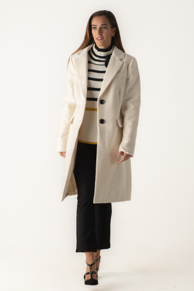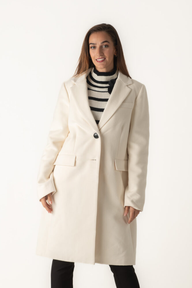 Παλτό μονόχρωμο εκρού μονόχρωμο. Κλείνει με κουμπιά.