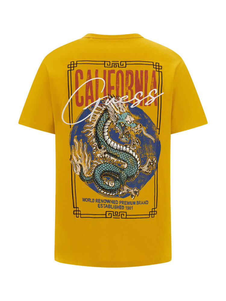 Guess Ανδρικό T-shirt Κίτρινο/Μουσταρδί με Κέντημα Μπροστά και Πίσω