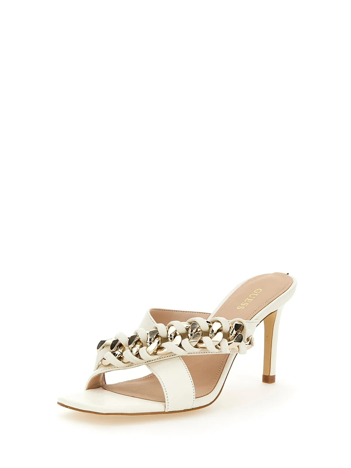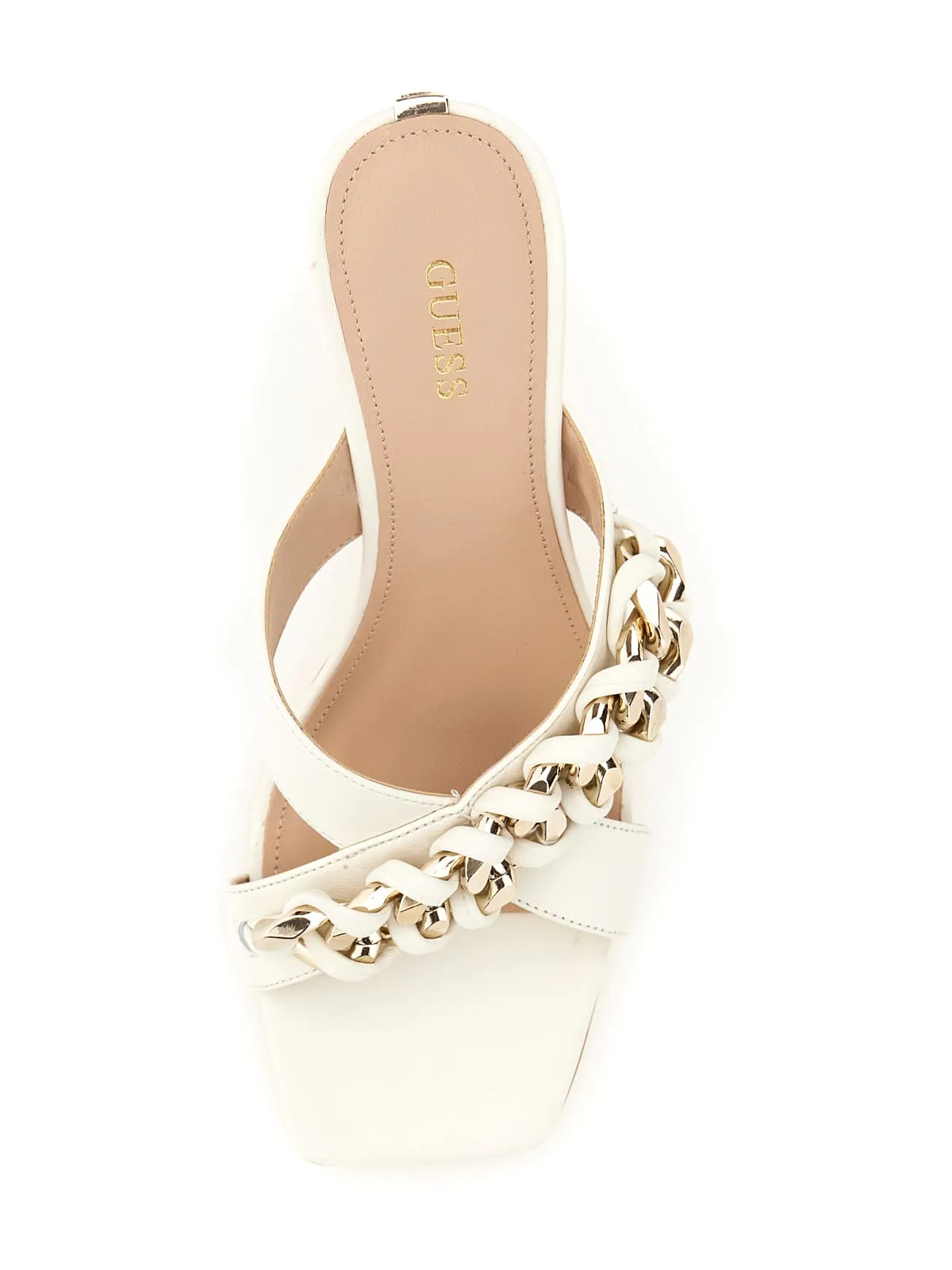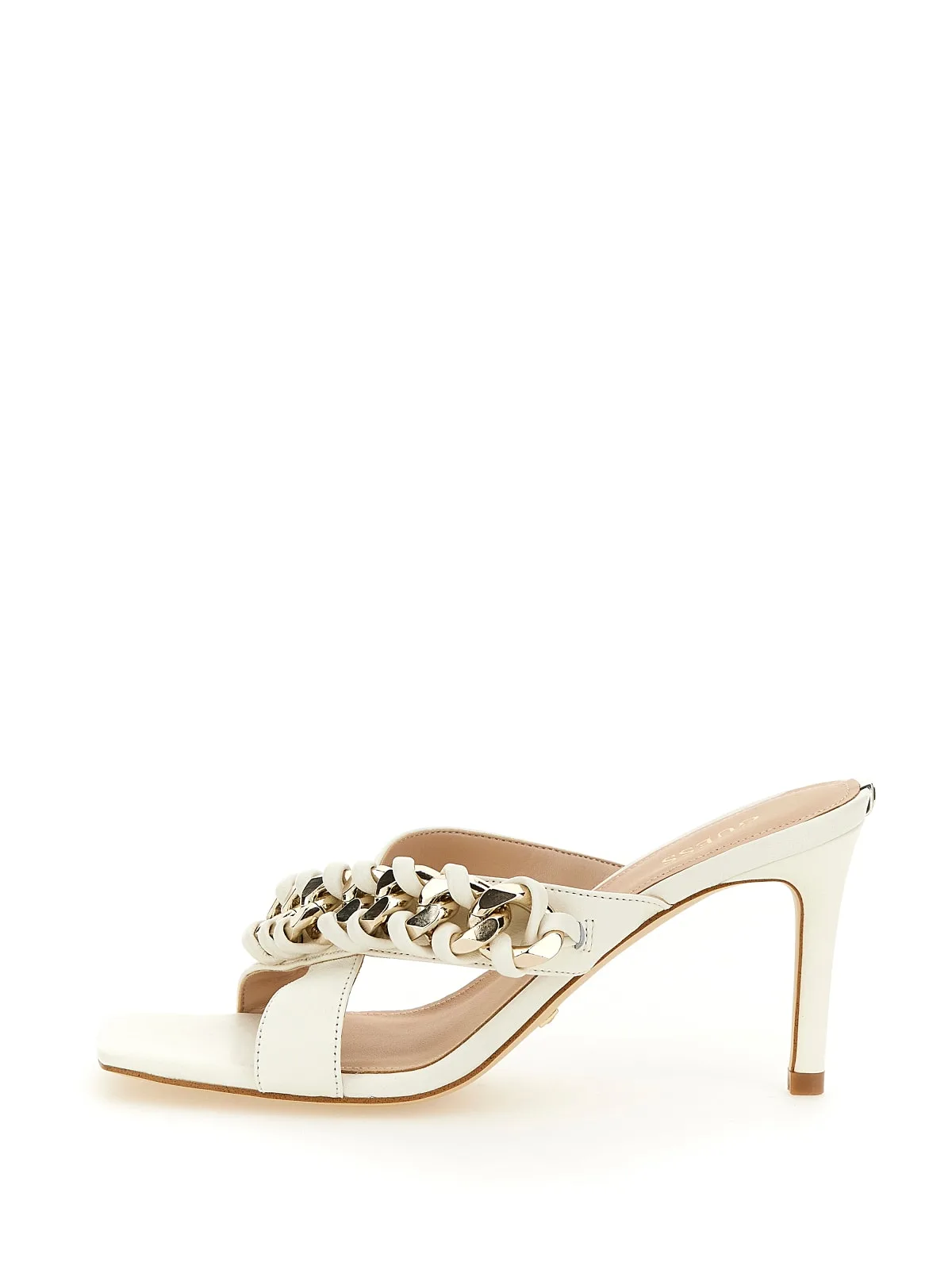 Guess Εκρού Πέδιλο με Ψηλό Τακούνι και Λεπτομέρεια με Αλυσίδα