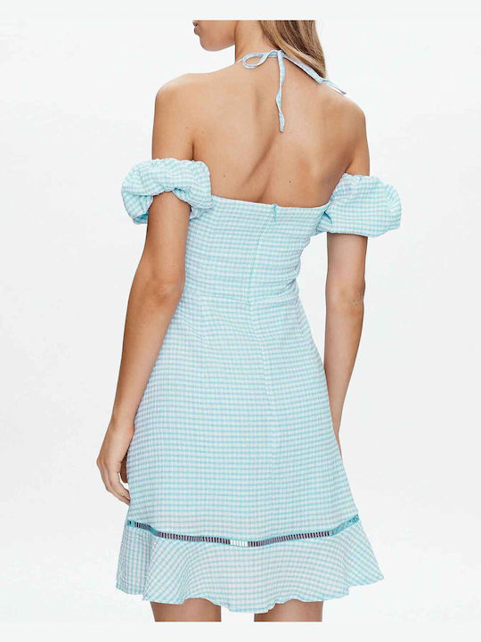 Guess Φόρεμα Καλοκαιρινό Mini Καρό Τιρκουάζ