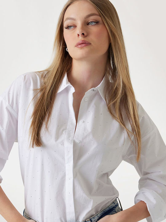 Guess Μακρυμάνικο Γυναικείο Πουκάμισο Λευκό