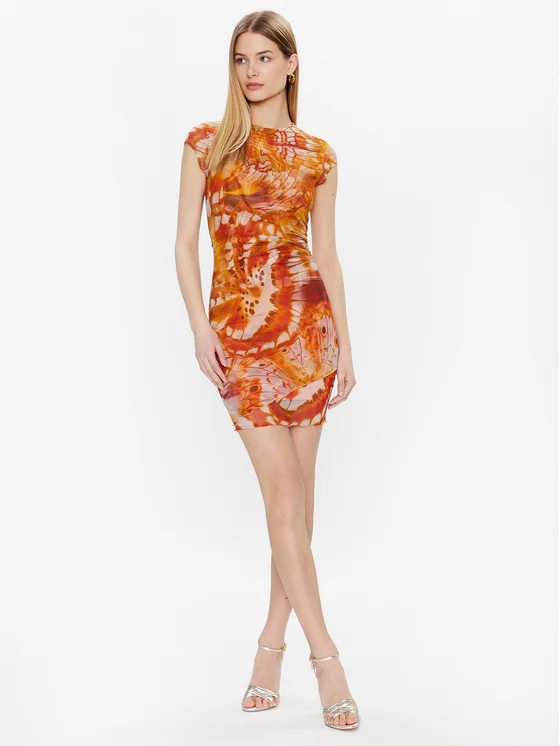Guess Mini Φόρεμα Εμπριμέ Slim Fit Πορτοκαλί-Καφέ