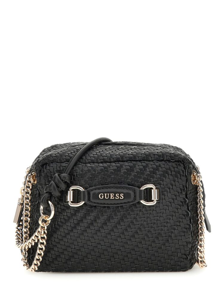 Guess Μίνι Πλεκτή Τσάντα Μαύρη Χιαστί Francy