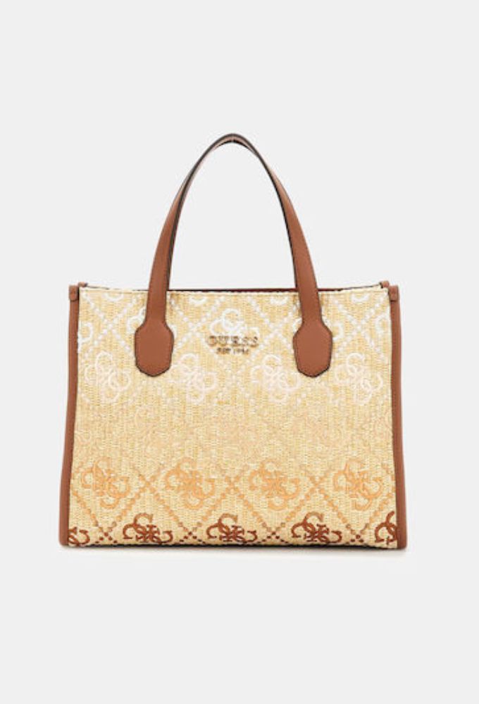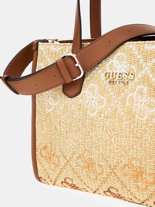 Guess Silvana 2 Ψάθινη Γυναικεία Τσάντα Tote Χειρός Mπεζ