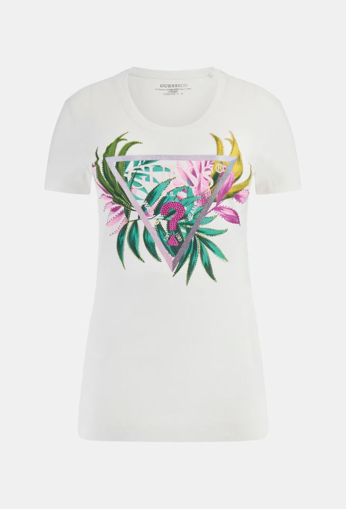 Guess T-shirt Slim με Tριγωνικό Λογότυπο Λευκό
