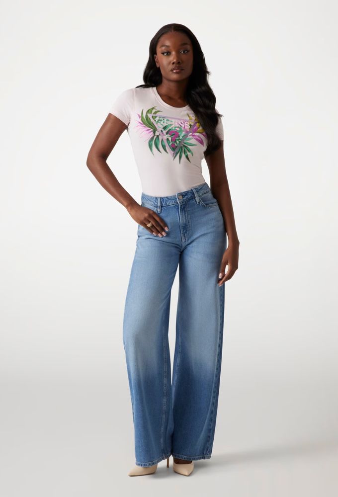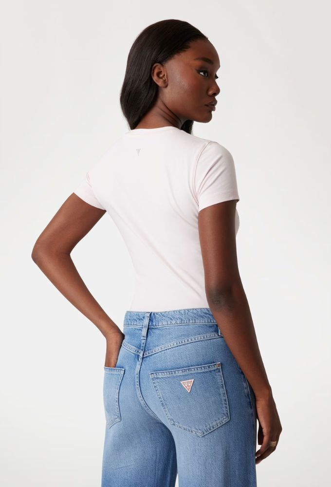 Guess T-shirt Slim με Tριγωνικό Λογότυπο Ροζ