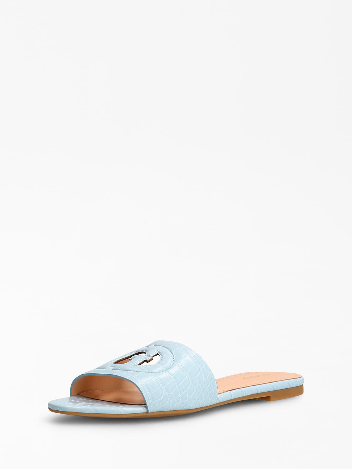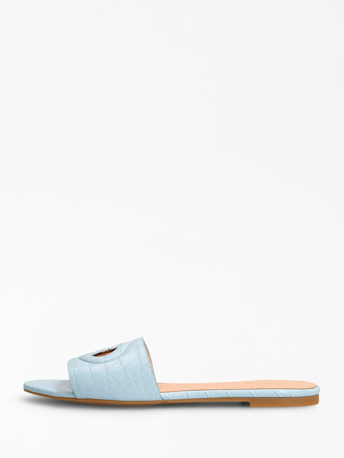 Guess Θαλασσί Παντόφλα Με Τρυπητό Λογότυπο