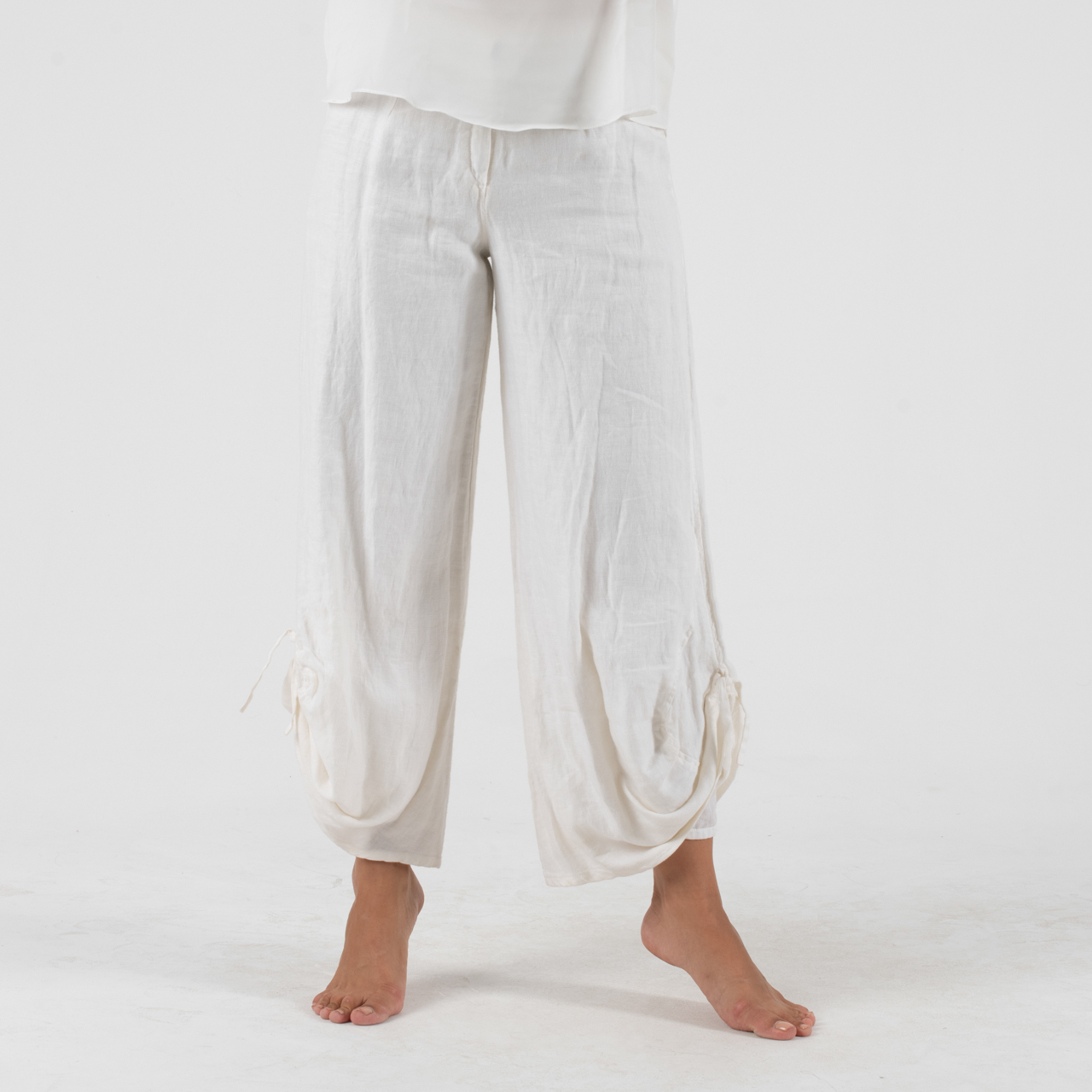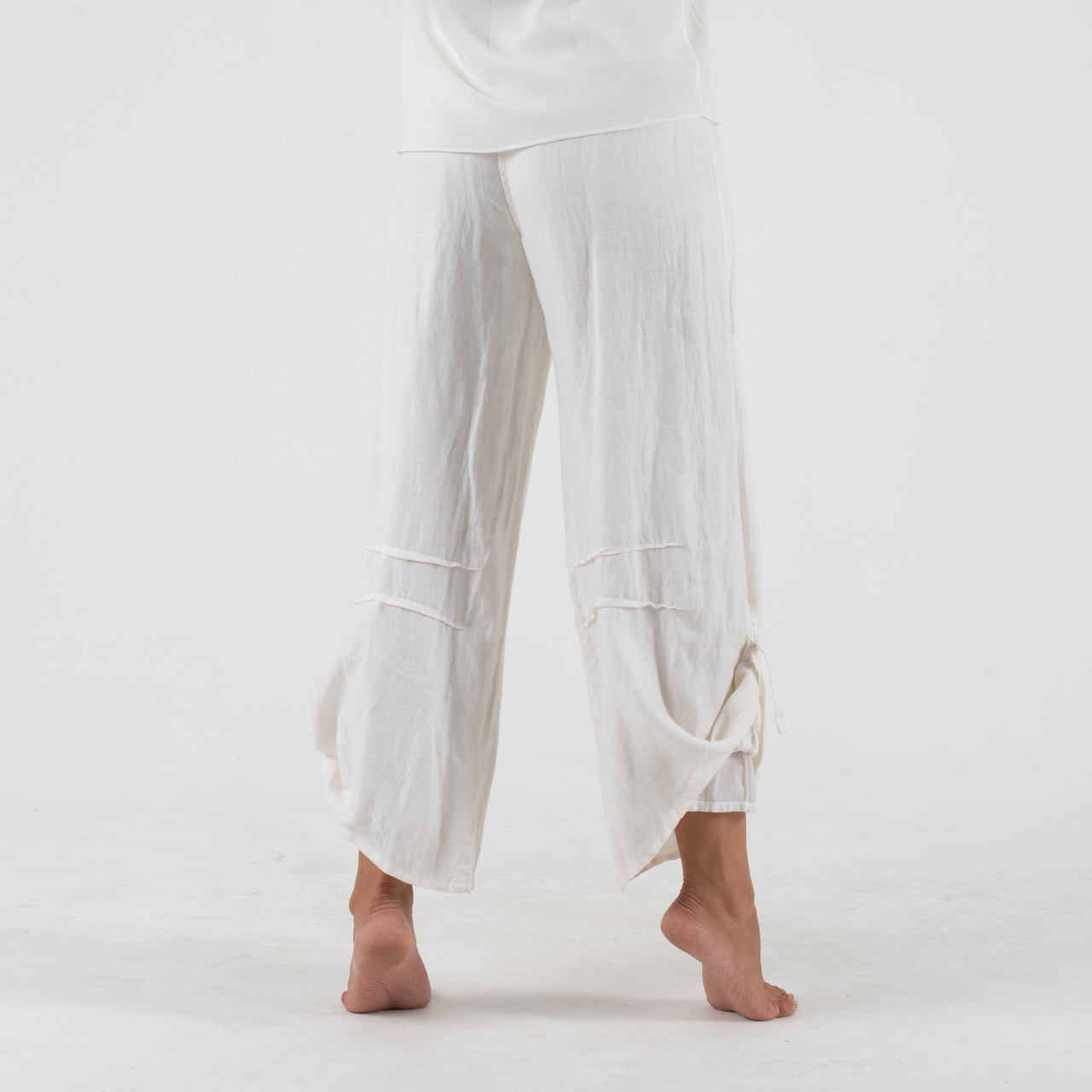 Λευκό Λινό Παντελόνι Σε Φαρδιά Γραμμή