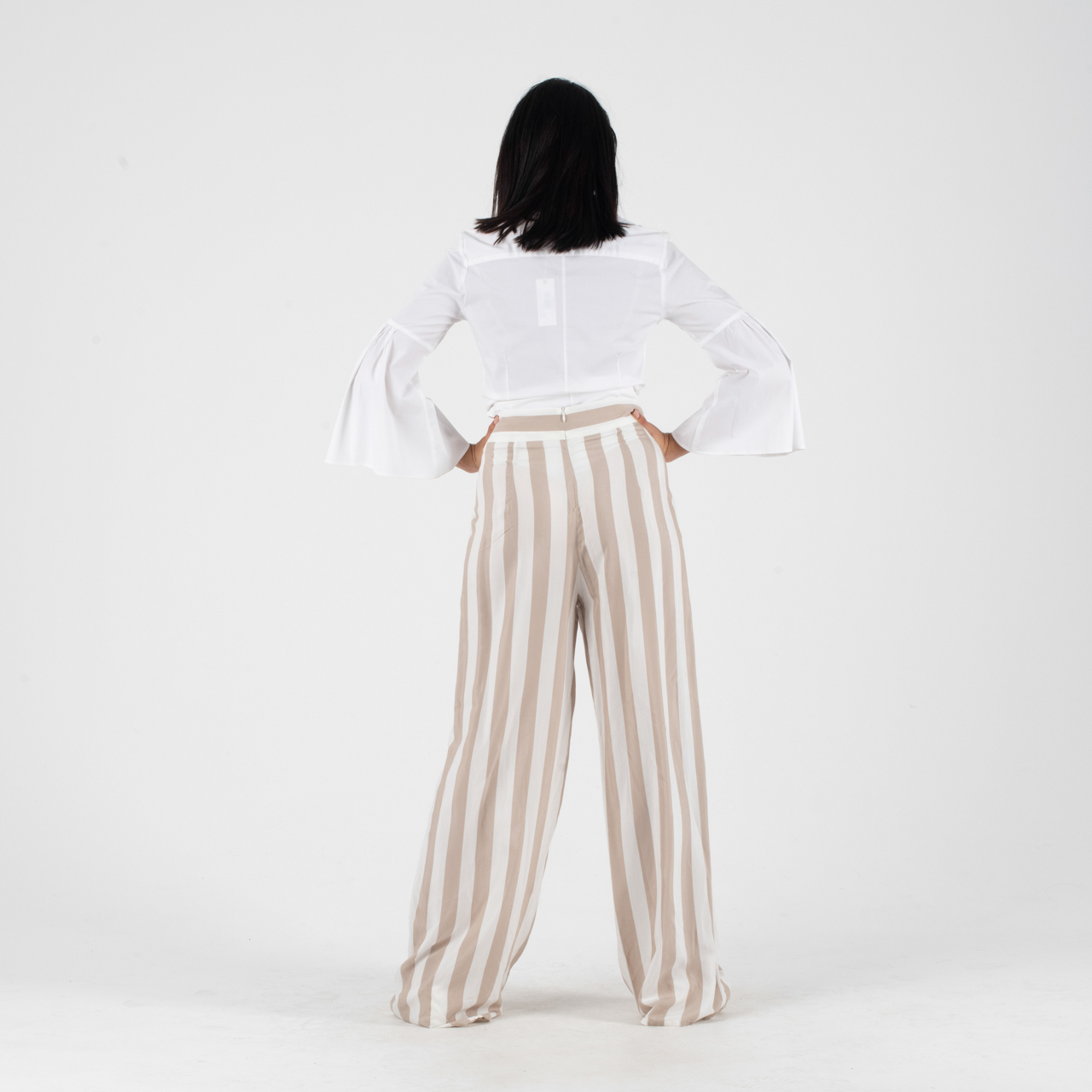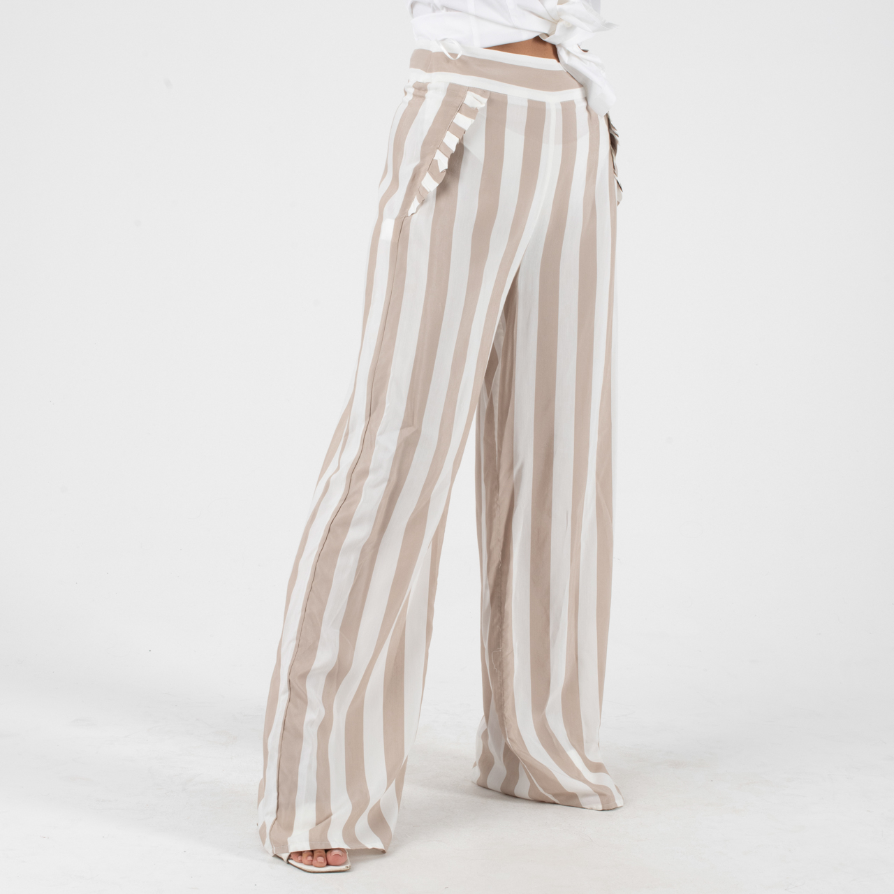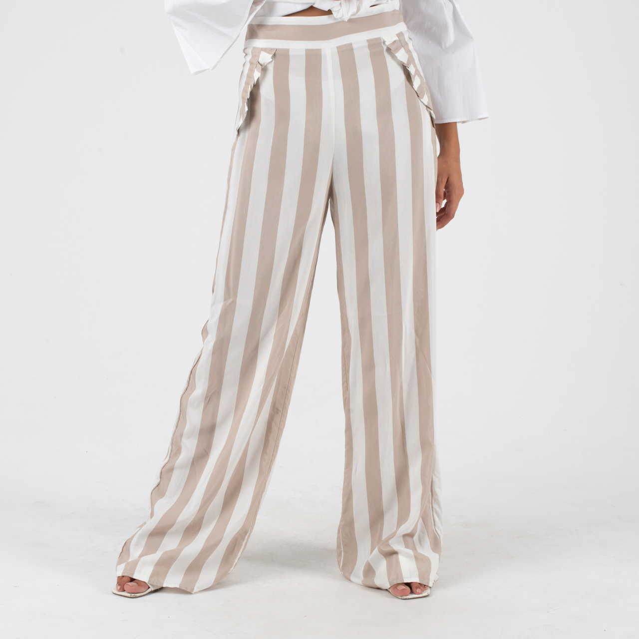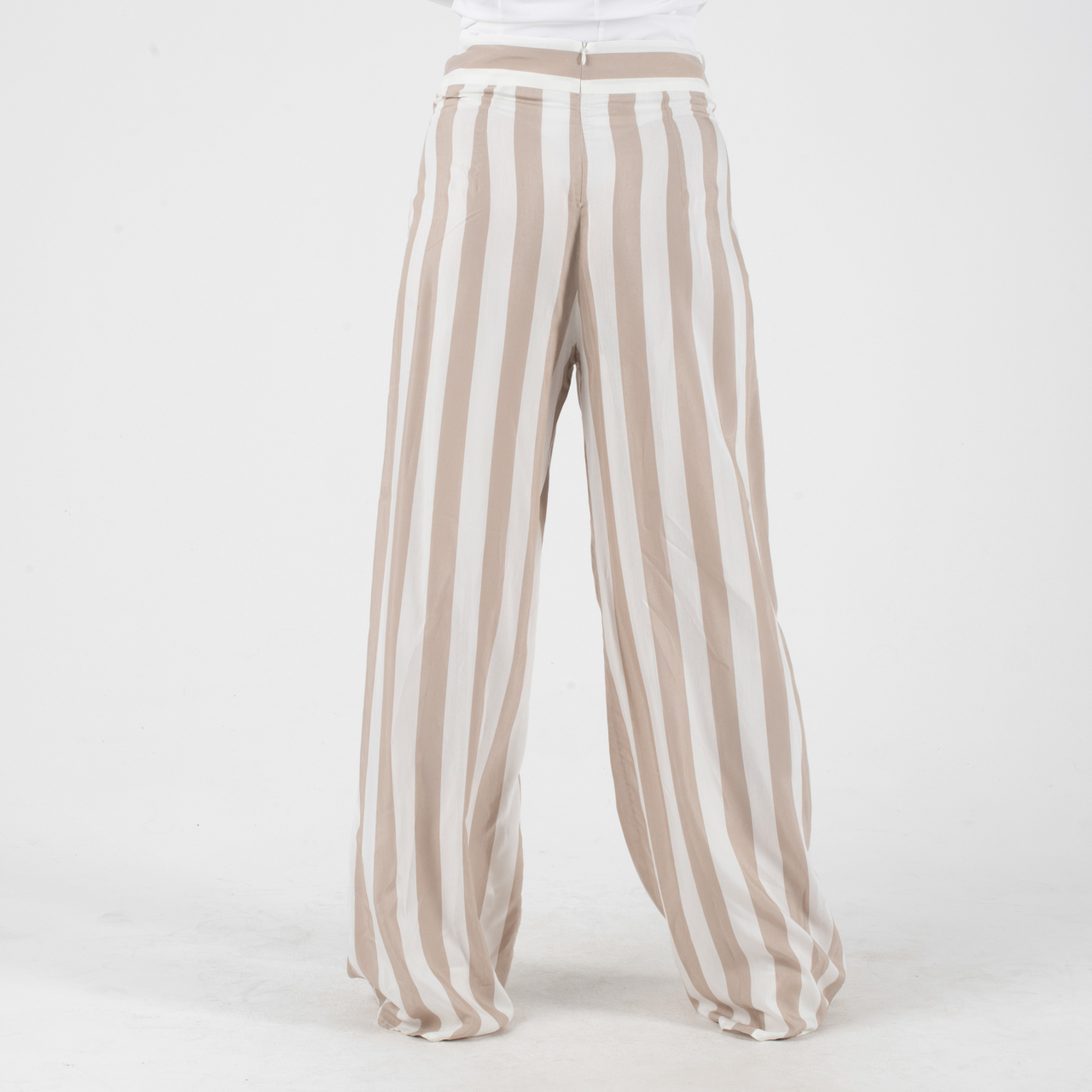 Manolo Μπεζ-Άσπρη παντελόνα με κάθετες φαρδιές ρίγες.