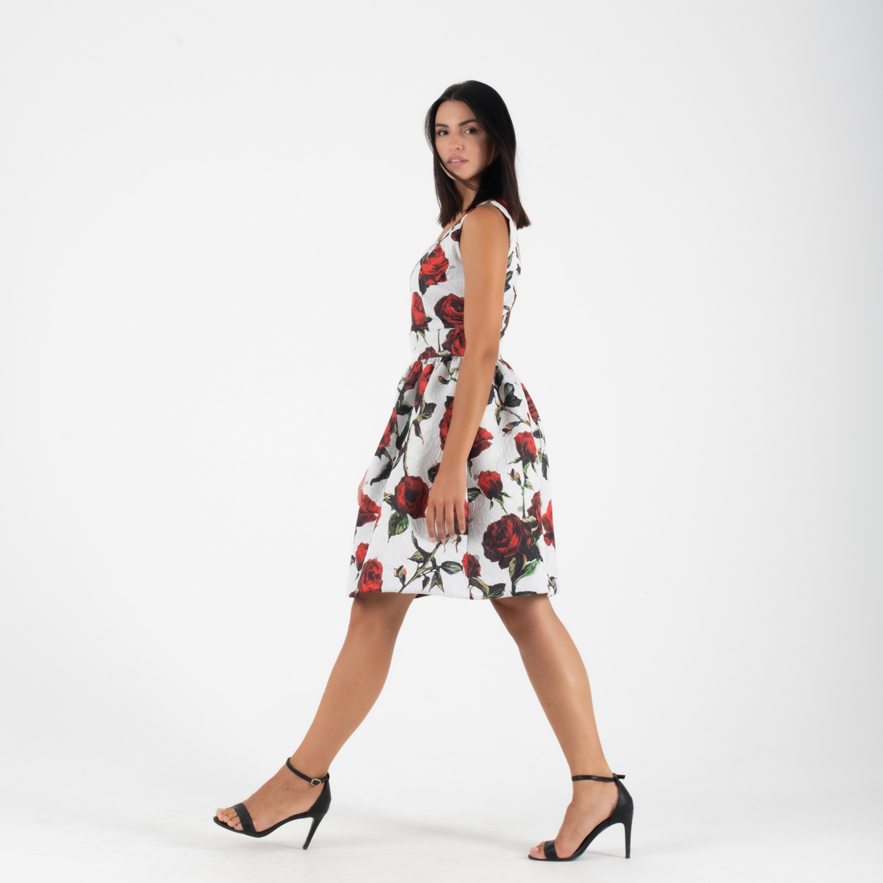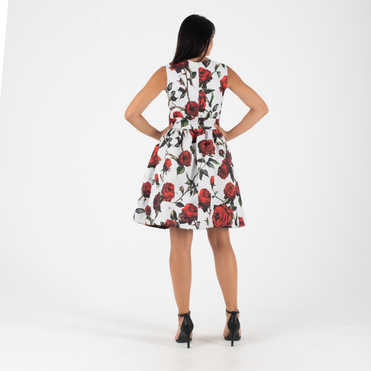 Σταθερό ύφασμα ,αμάνικο με ανάλαφρες πιέτες και κλείσιμο με κρυφό φερμουάρ.