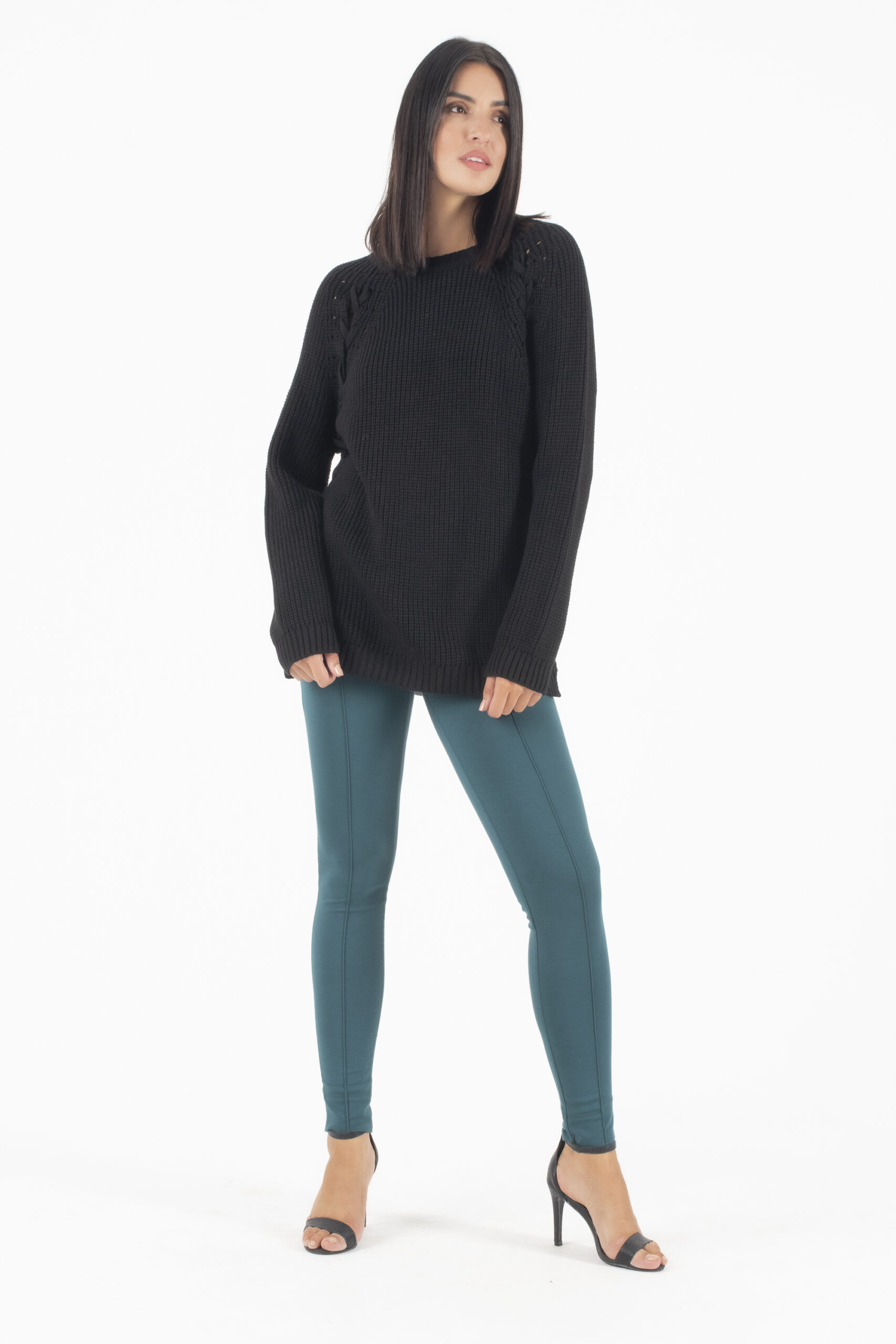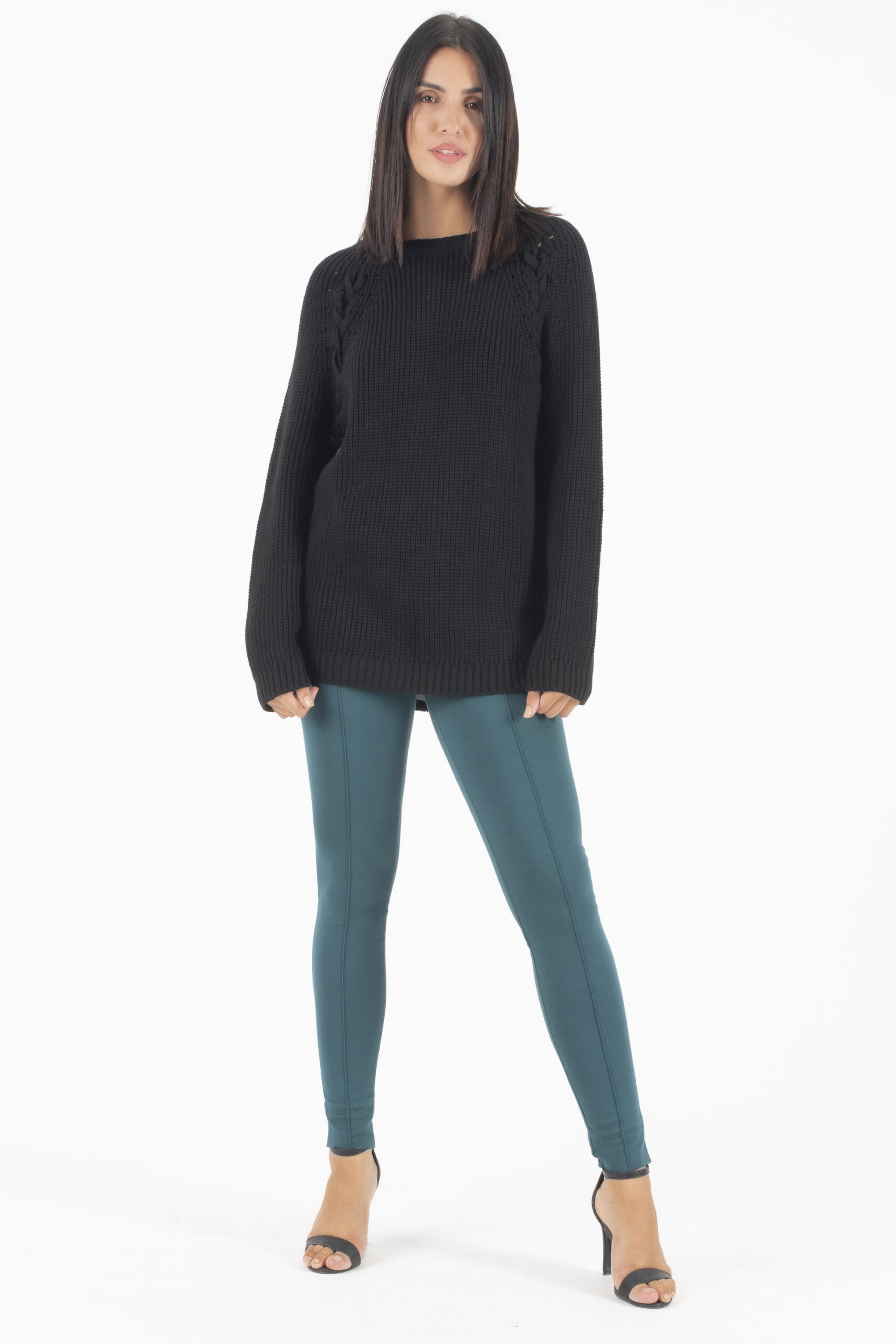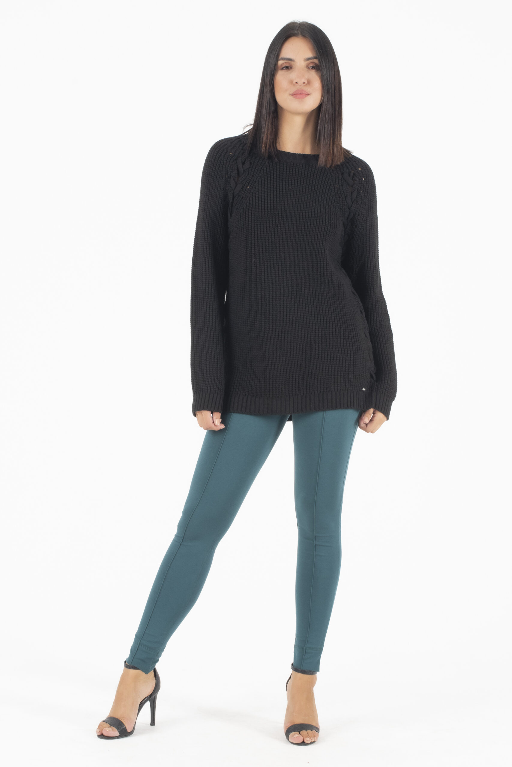 AGGEL Μαύρο Πλεκτό Παντελόνι με πιέτες