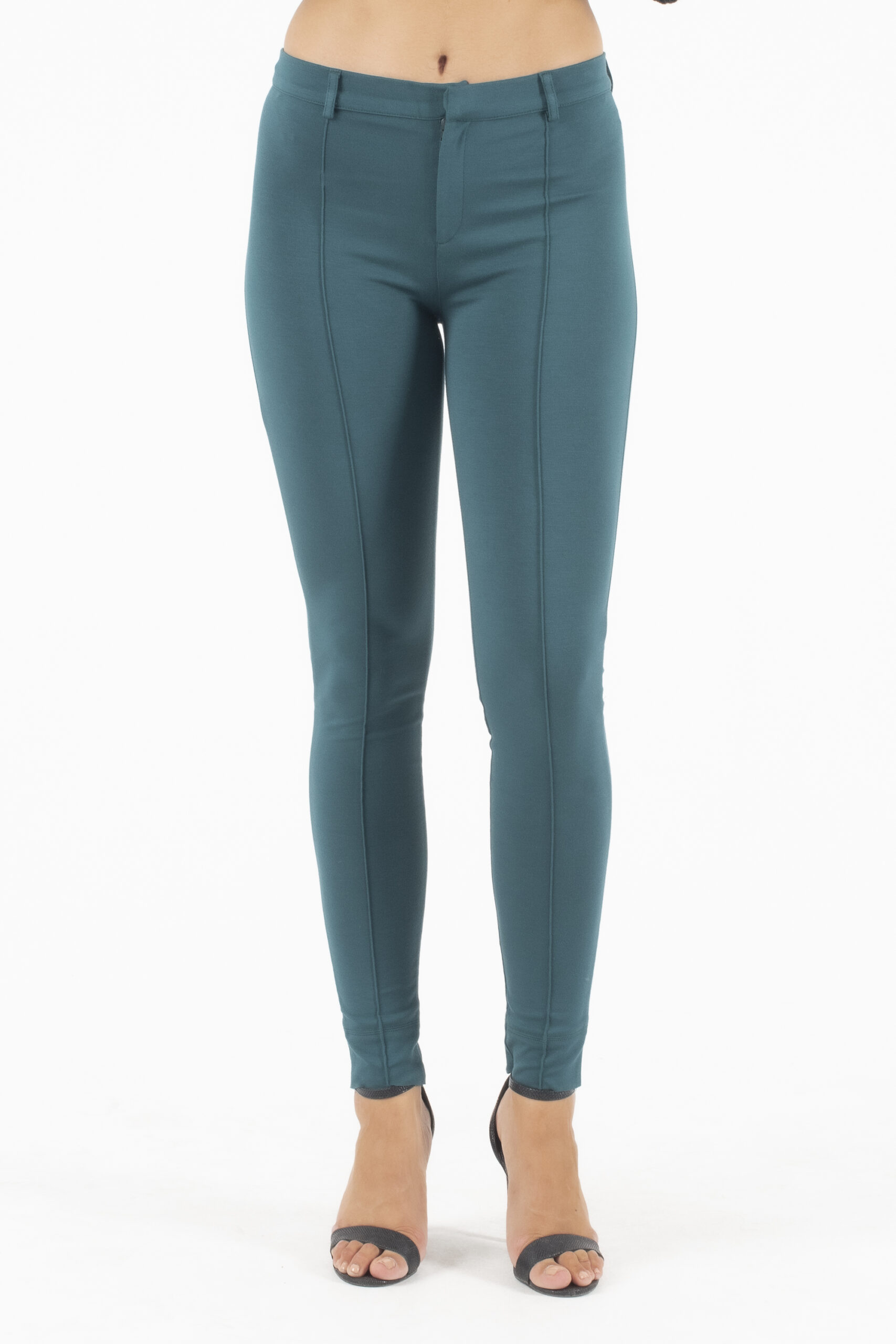 Παντελόνι-κολάν, εφαρμοστό, άνετο, με ψεύτικες τσέπες στο πίσω μέρος και κλείσιμο μπροστά με φερμουάρ, χρώμα πράσινο-κυπαρρισί.