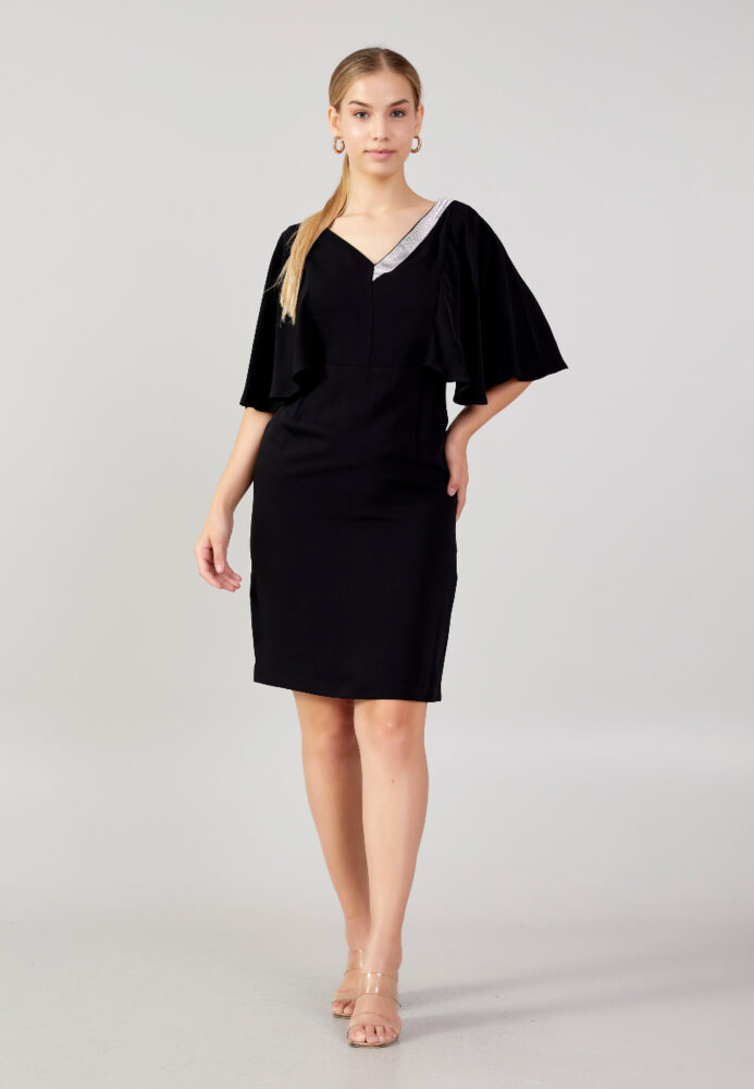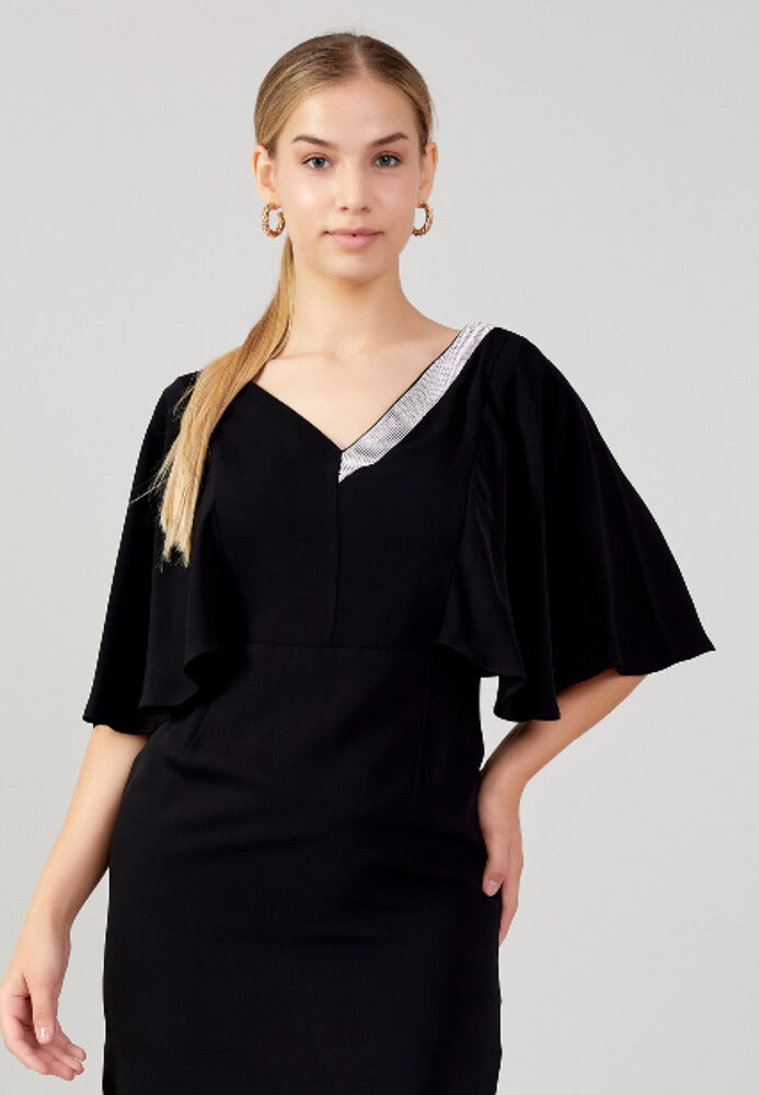 Μαύρο midi φόρεμα με διακοσμητικό στρας στο V