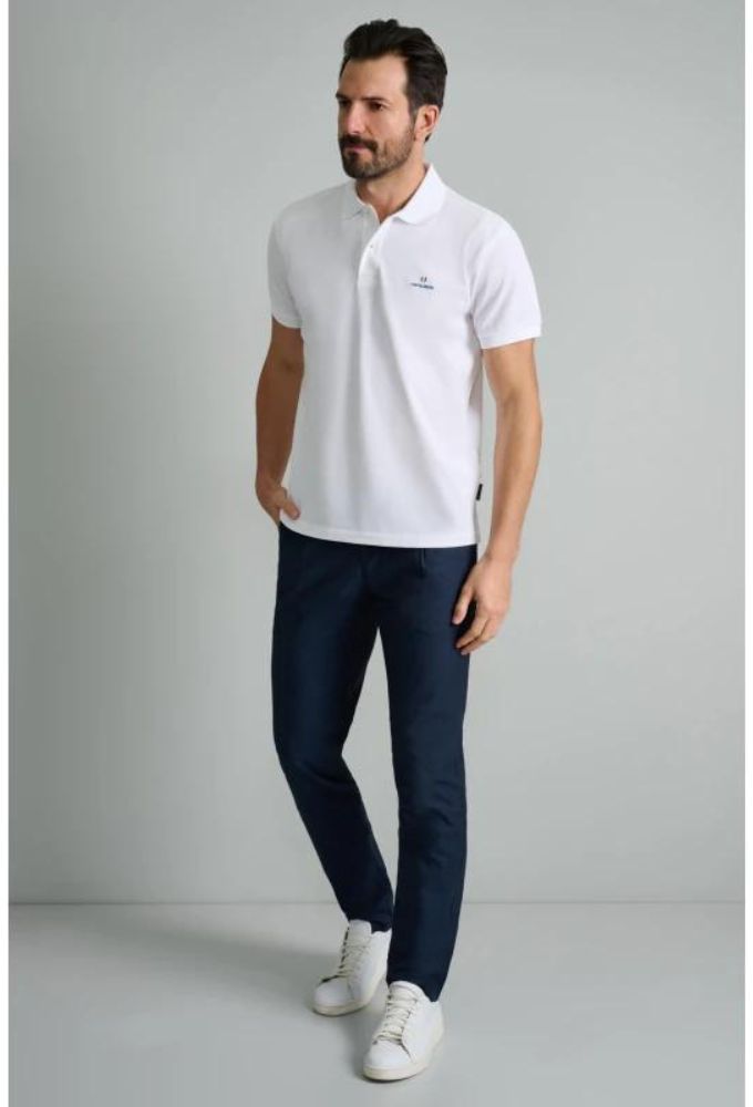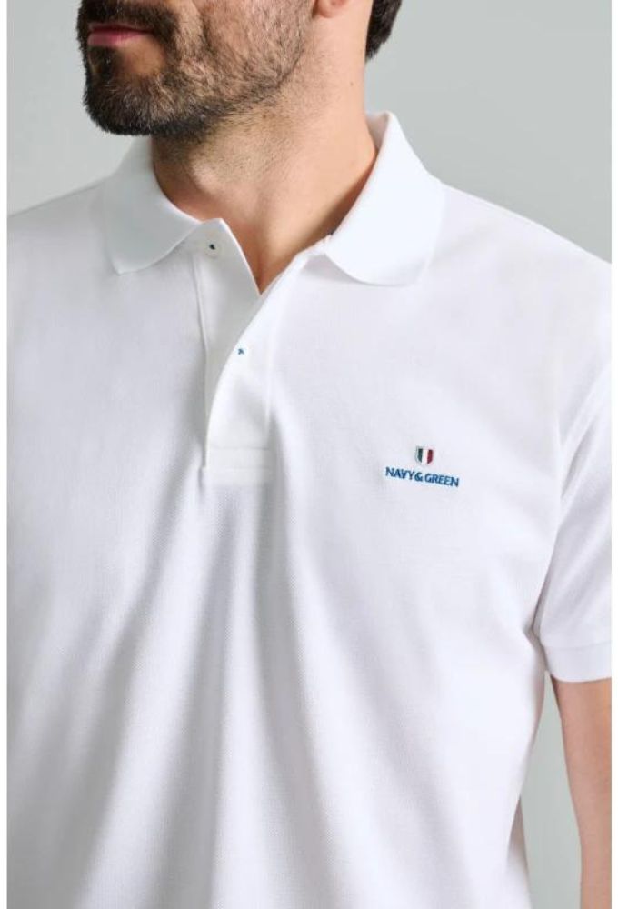 Navy&Green Ανδρική Μπλούζα Polo Λευκό Μονόχρωμο Custom Fit