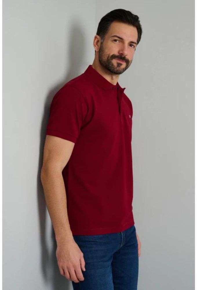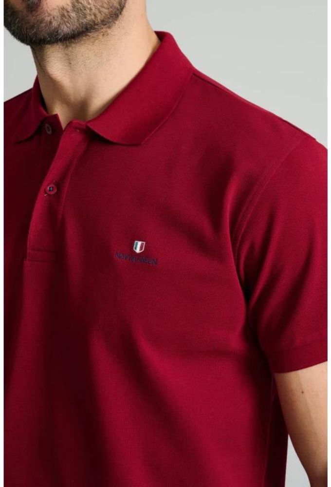 Navy&Green Ανδρική Μπλούζα Polo Mπορντό Μονόχρωμο Custom Fit