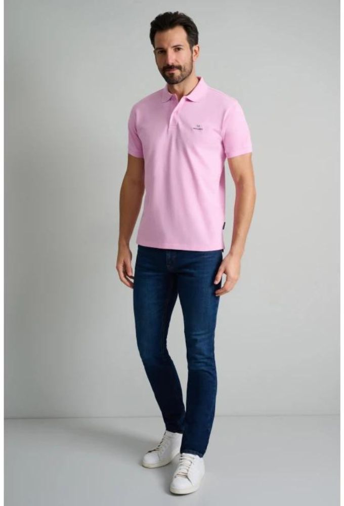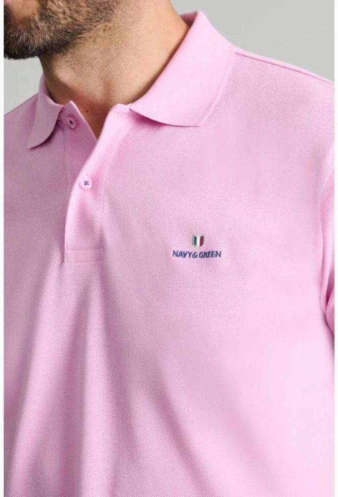 Navy&Green Ανδρική Μπλούζα Polo Ροζ Μονόχρωμο Custom Fit