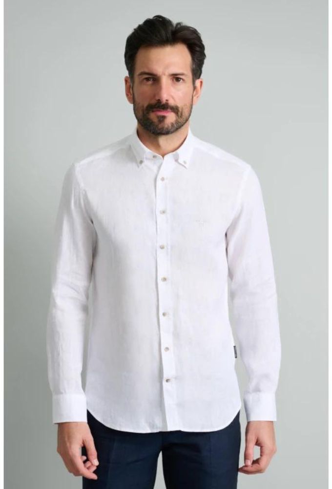 Navy&Green Πουκάμισο Άσπρο Λινό Comfort Fit