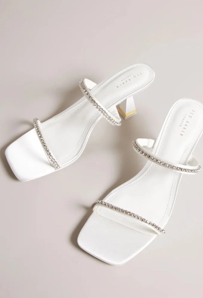 Ted Baker Rinita Λευκά Πέδιλα με Στρας και Λεπτά Λουράκια