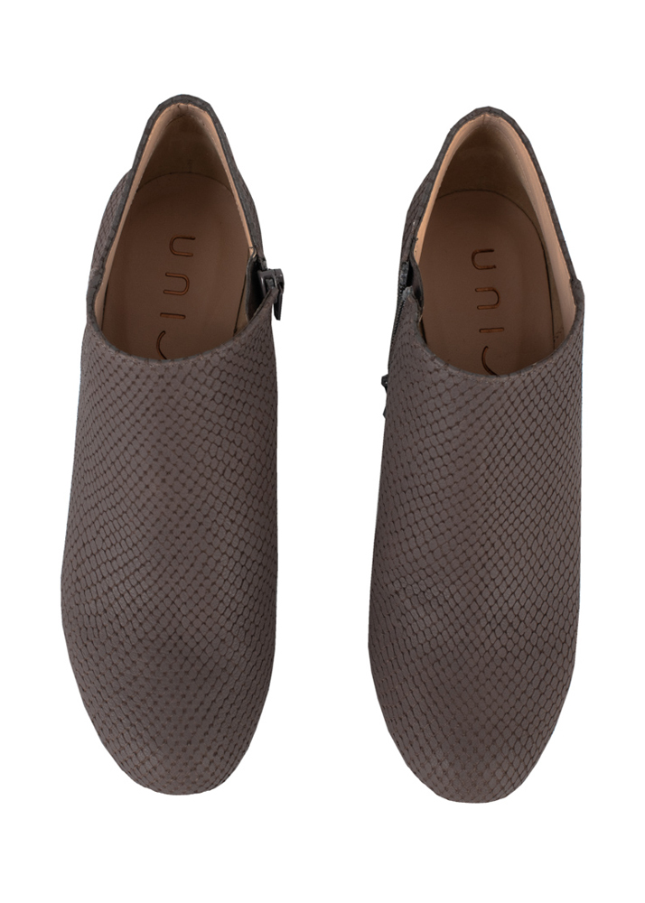 Unisa Γκρι-Μπεζ Μποτάκια με Εφέ Φίδι και Ψηλό Τακούνι