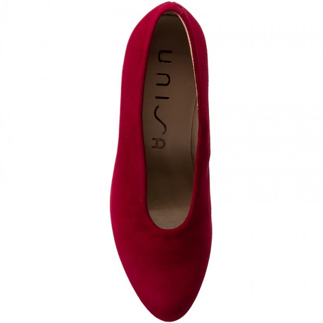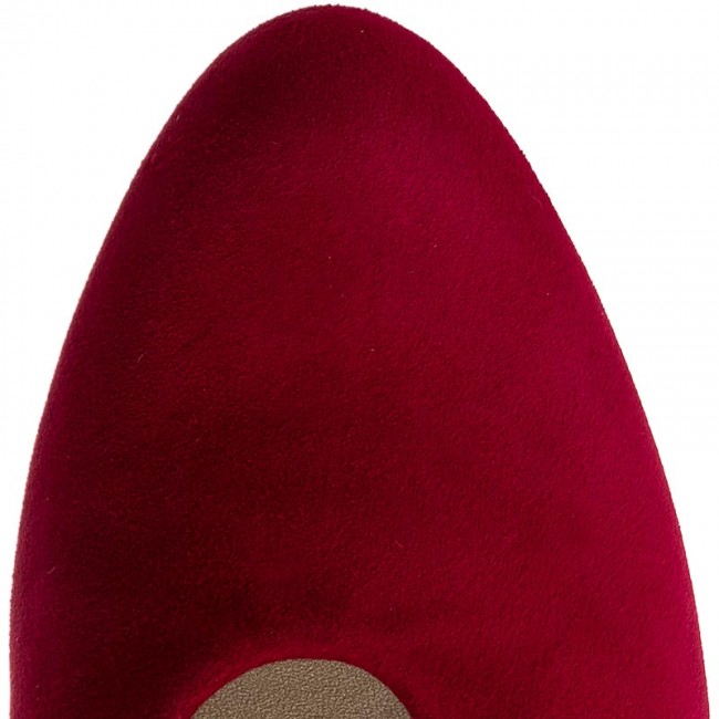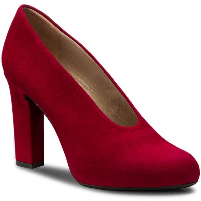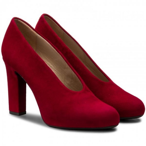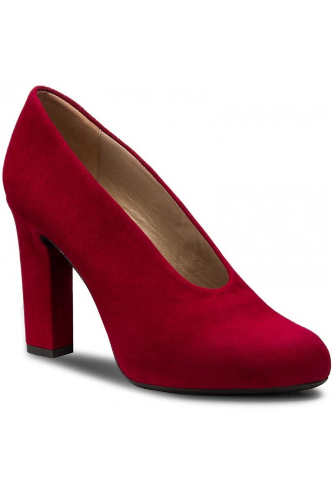 Δερμάτινη σουέτ γόβα σε βαθύ κόκκινο και μαύρο χρώμα.Ανατομικός πάτος με εσωτερική φιάπα και χοντρό σταθερό τακούνι με αντιολισθητικό πάτο. Μόδα και άνεση στα πόδια σας.