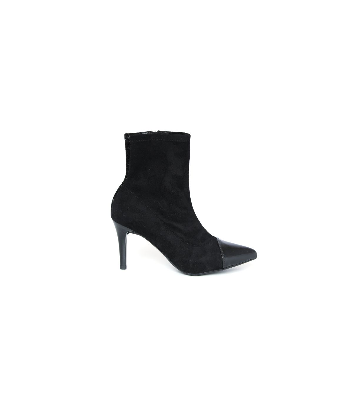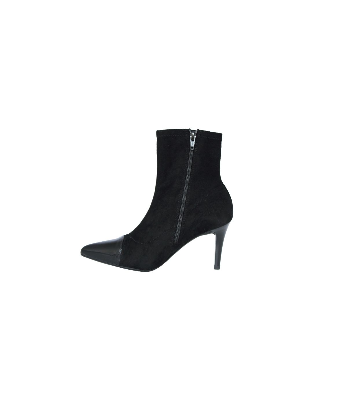 Μαύρα μποτάκια από μαλακό σουέτ, με λεπτό άνετο τακούνι λουστρίνι, μυτέρο μπροστά με λουστρίνι στη μύτη και φερμουάρ στο πλάι για άνετη εφαρμογή. Ιδιαίτερα μαλακό υλικό που αγκαλιάζει ακριβώς το πόδι σας.