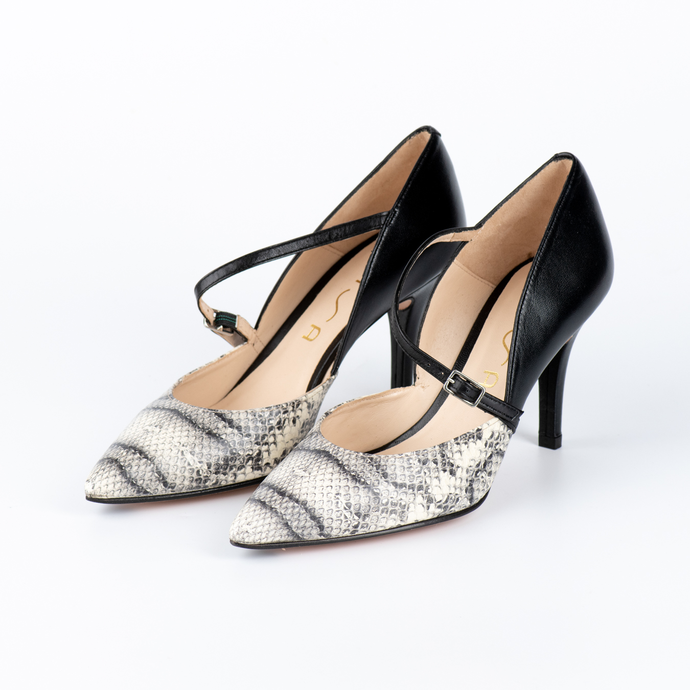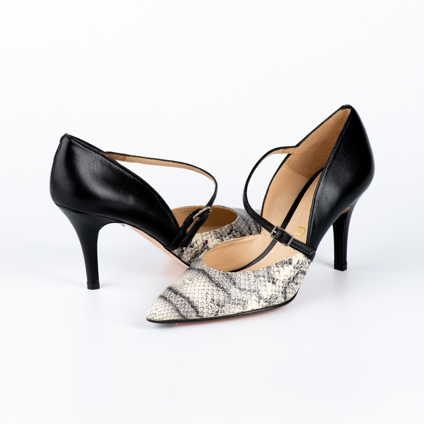 Γυναικείες Μαύρες-Φίδινες γόβες με μπαρέτα